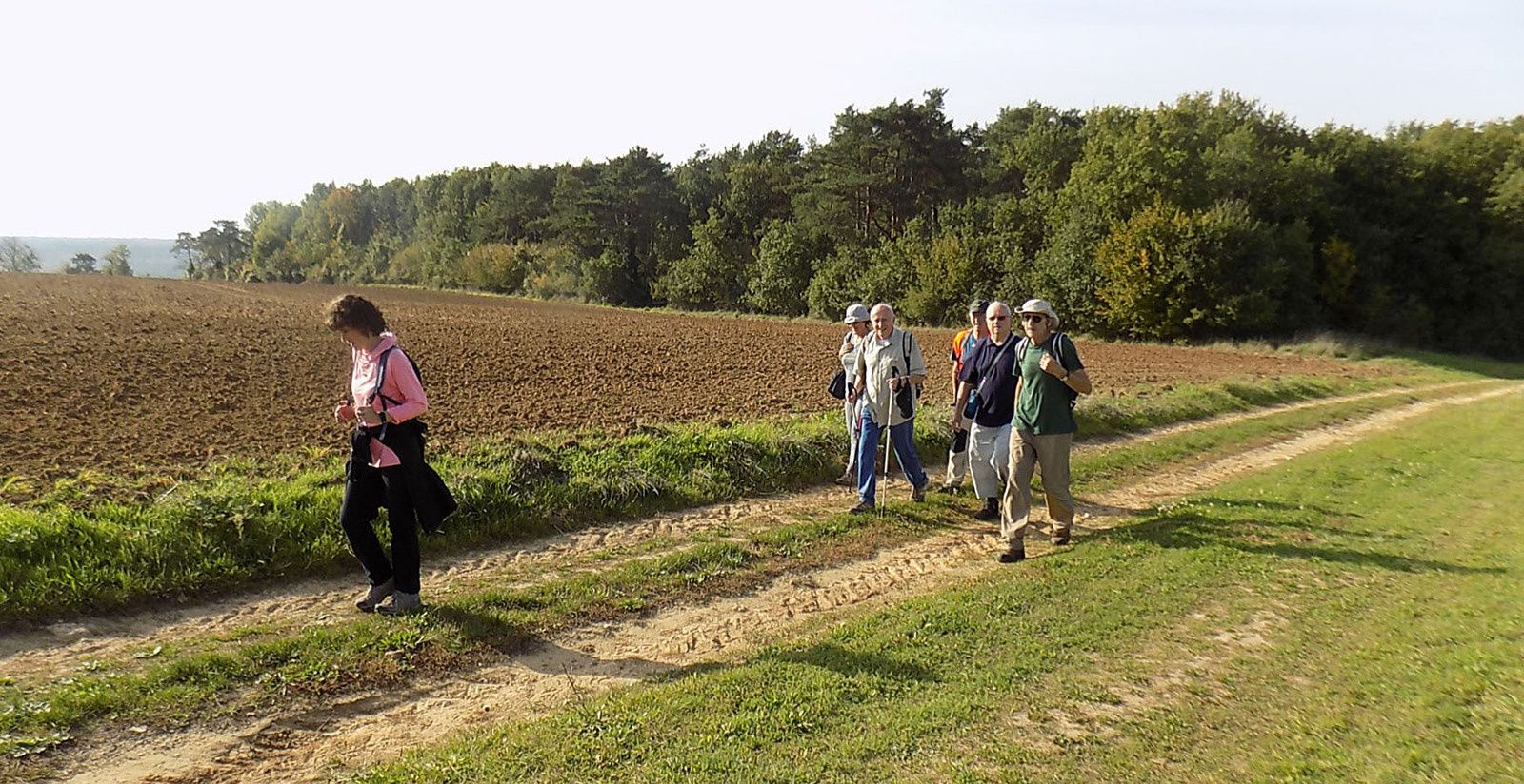 Nous rejoignons le PR qui doit nous amener à Marchais. Mais sur ce chemin nous sommes stoppés par des tirs fournis provenant d’une chasse à quelques encablures de notre chemin. Nous stoppons le groupe et avec Claude nous allons au-devant de ces chasseurs pour décider de la marche à suivre.