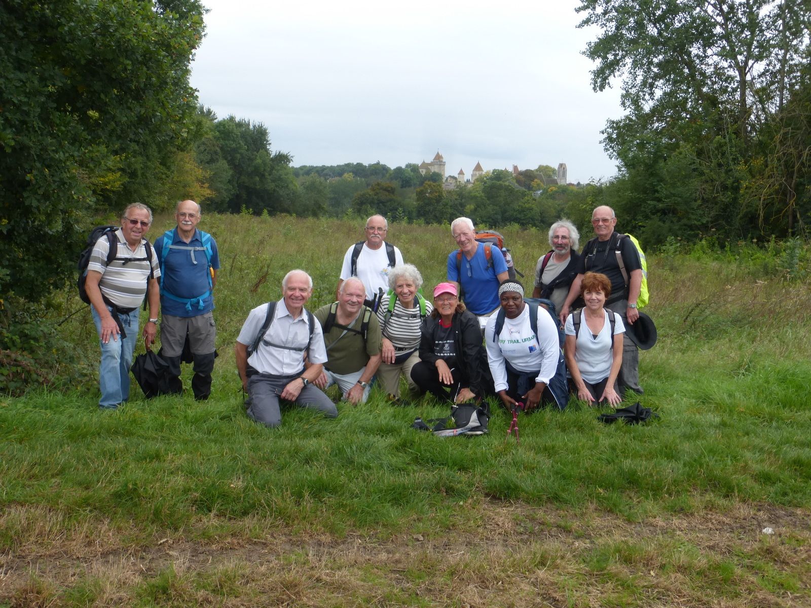 Nos pas nous ramènerons sur Blandy, par le GR1 et PR et nous faisons la dernière photo de groupe avec en fond le château et ses tours.